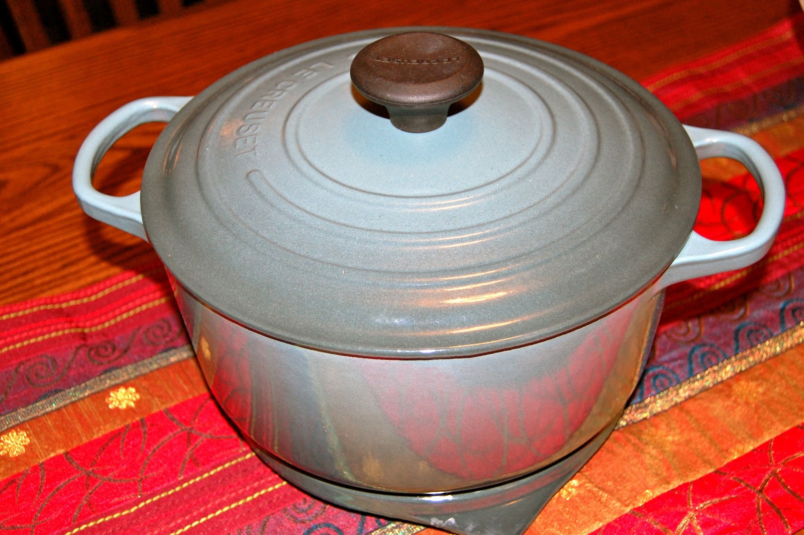 If you are cooking this soup in your new Le Creuset pot I suggest first taking the aper label off the bottom. I only recognized this when (hand) washing the pot after cooking the soup. That explained the odd smell when I first turned the stove on. I thought it had to do with the paint on the pot.